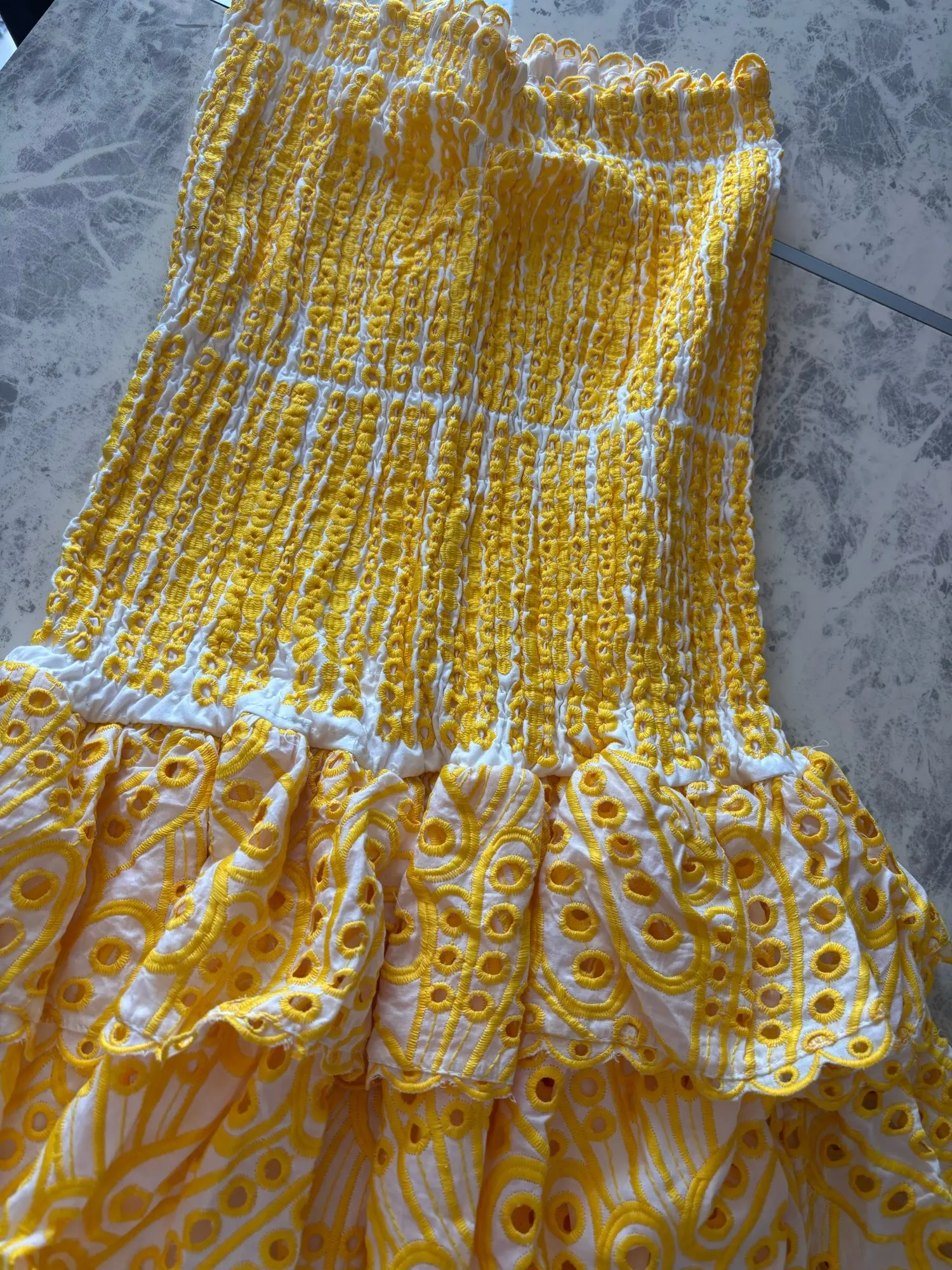 It is beautiful, super good quality the fabric is thick and has lining, so it is not transparent at all. Comes wide from the bust part so they can order one size less.